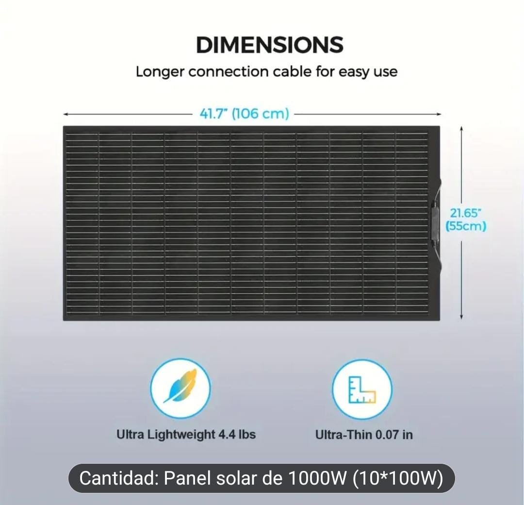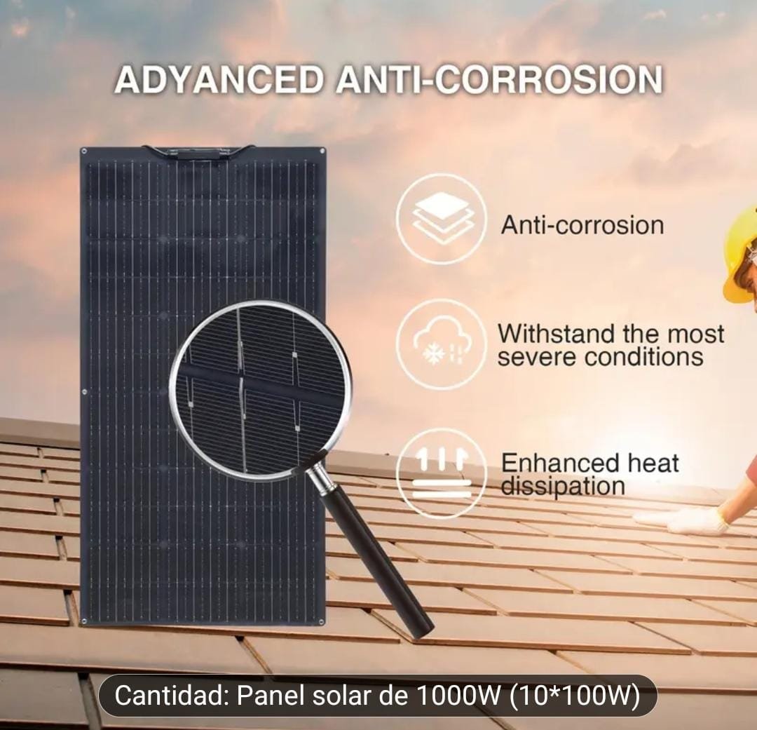 ✅ Potencia total: 1000W (10 paneles de 100W c/u)