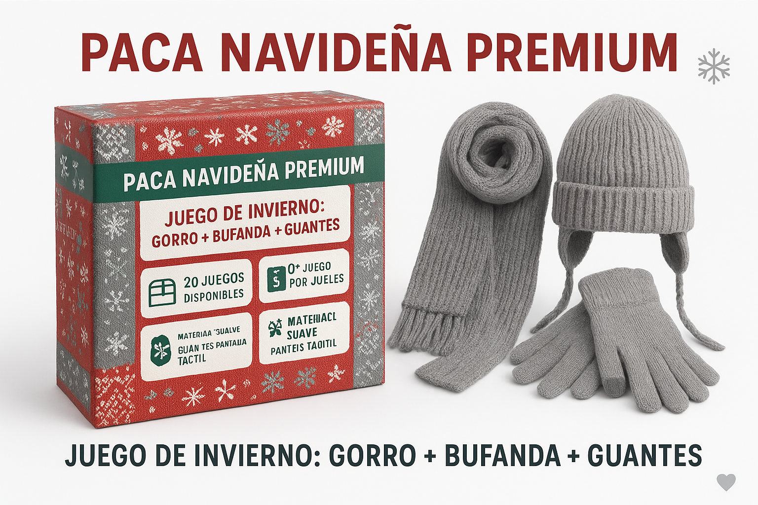 ✅ Set Completo 4 en 1: Gorro + bufanda + guantes + (producto adicional)
